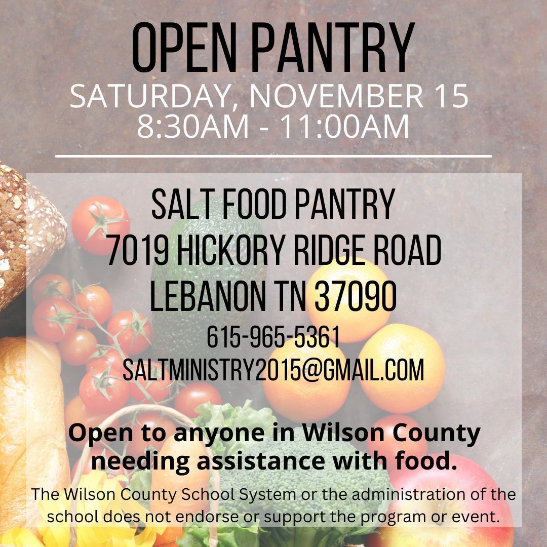 Open to anyone in Wilson County needing assistance with food.